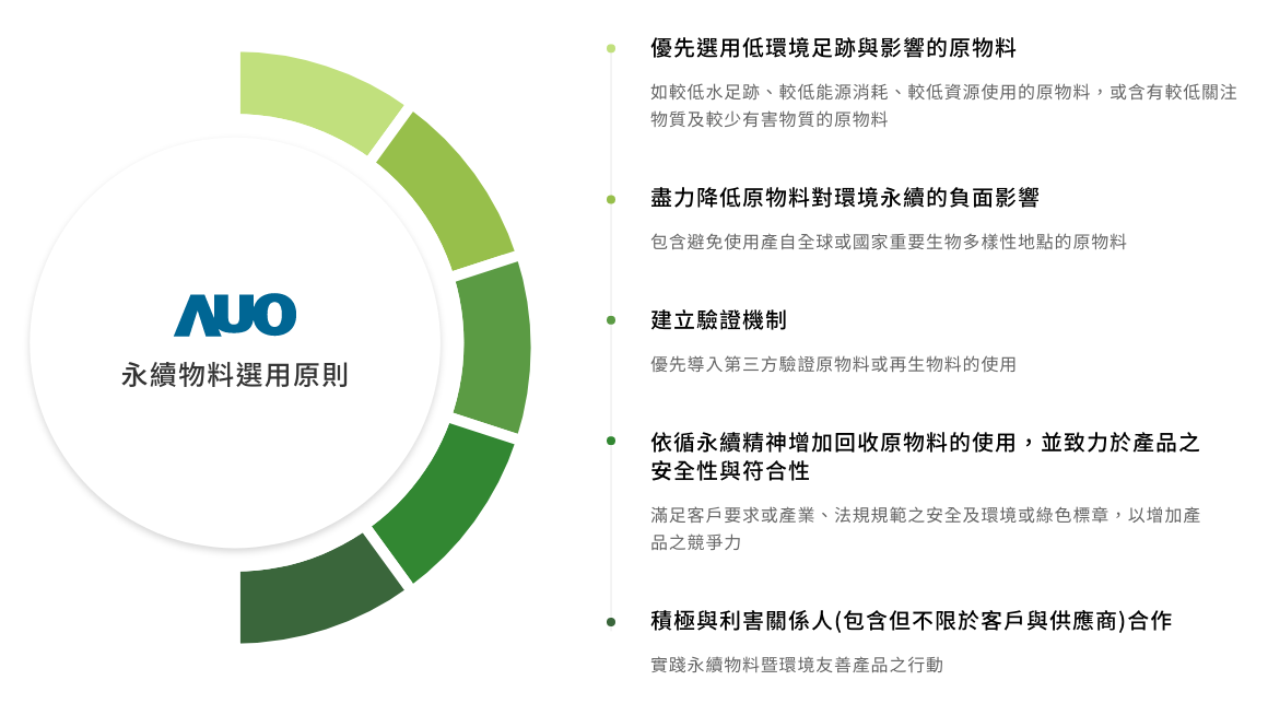 呼應永續產品願景,選用低環境負荷與風險之原物料